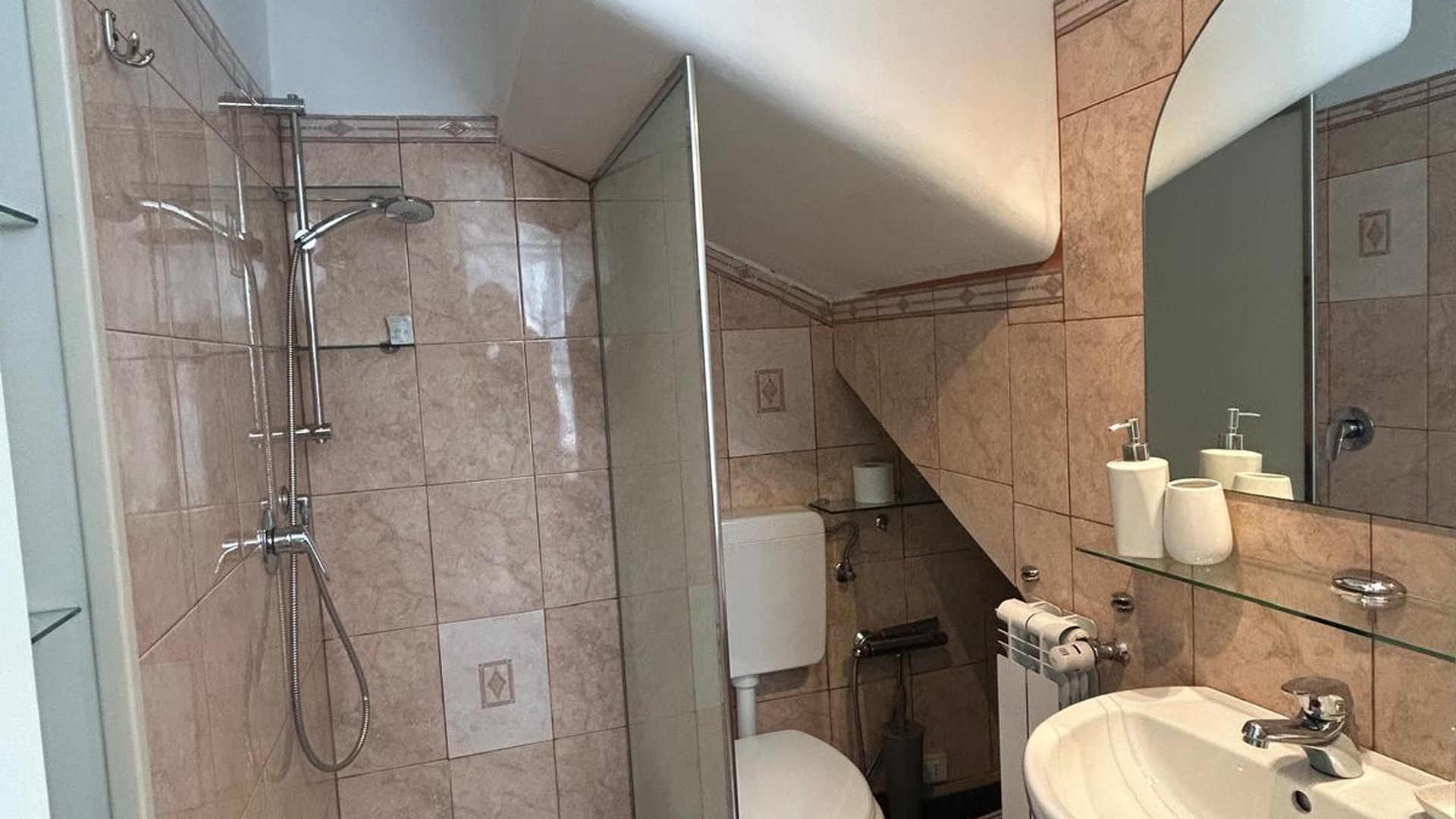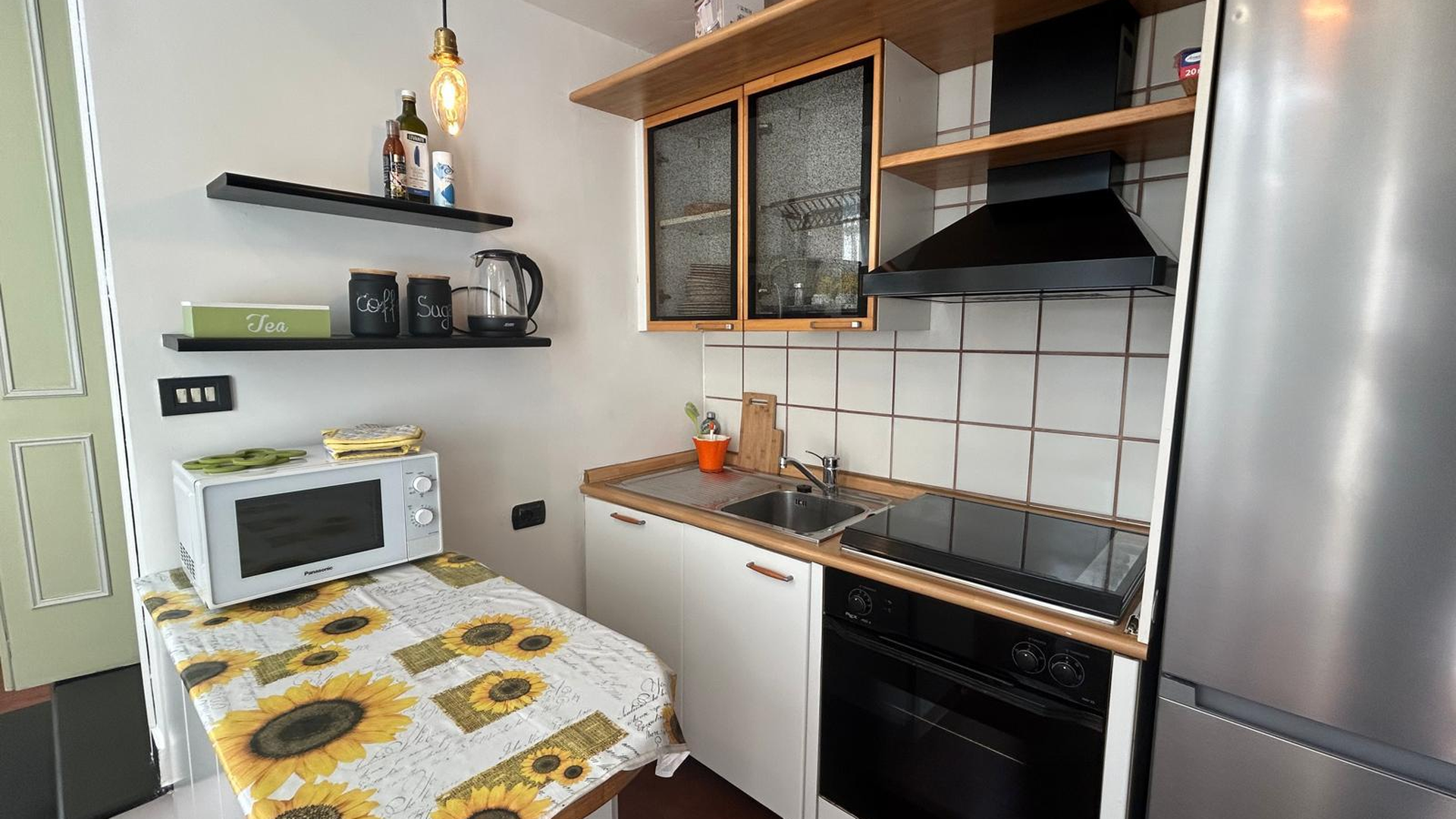 Appartamento funzionale di 70 mq su due livelli, ideale per fino a 5 persone. Al piano inferiore: camera con letto a una piazza e mezza, bagno con doccia e zona studio. Al piano superiore: zona giorno con angolo cottura, divano letto matrimoniale e poltrona letto singolo. Balcone con angolo lavanderia, perfetto per momenti di relax. Giardino in comune condiviso con gli altri appartamenti.