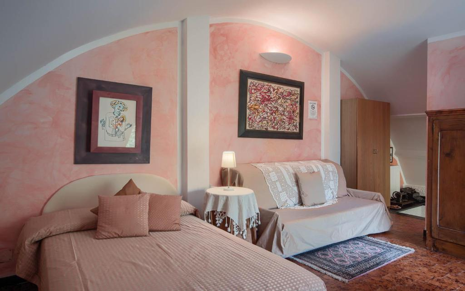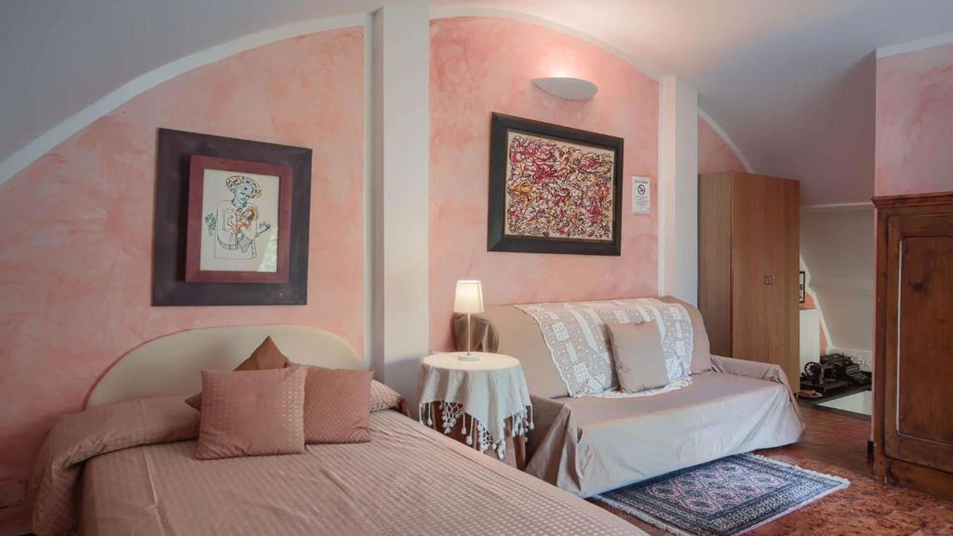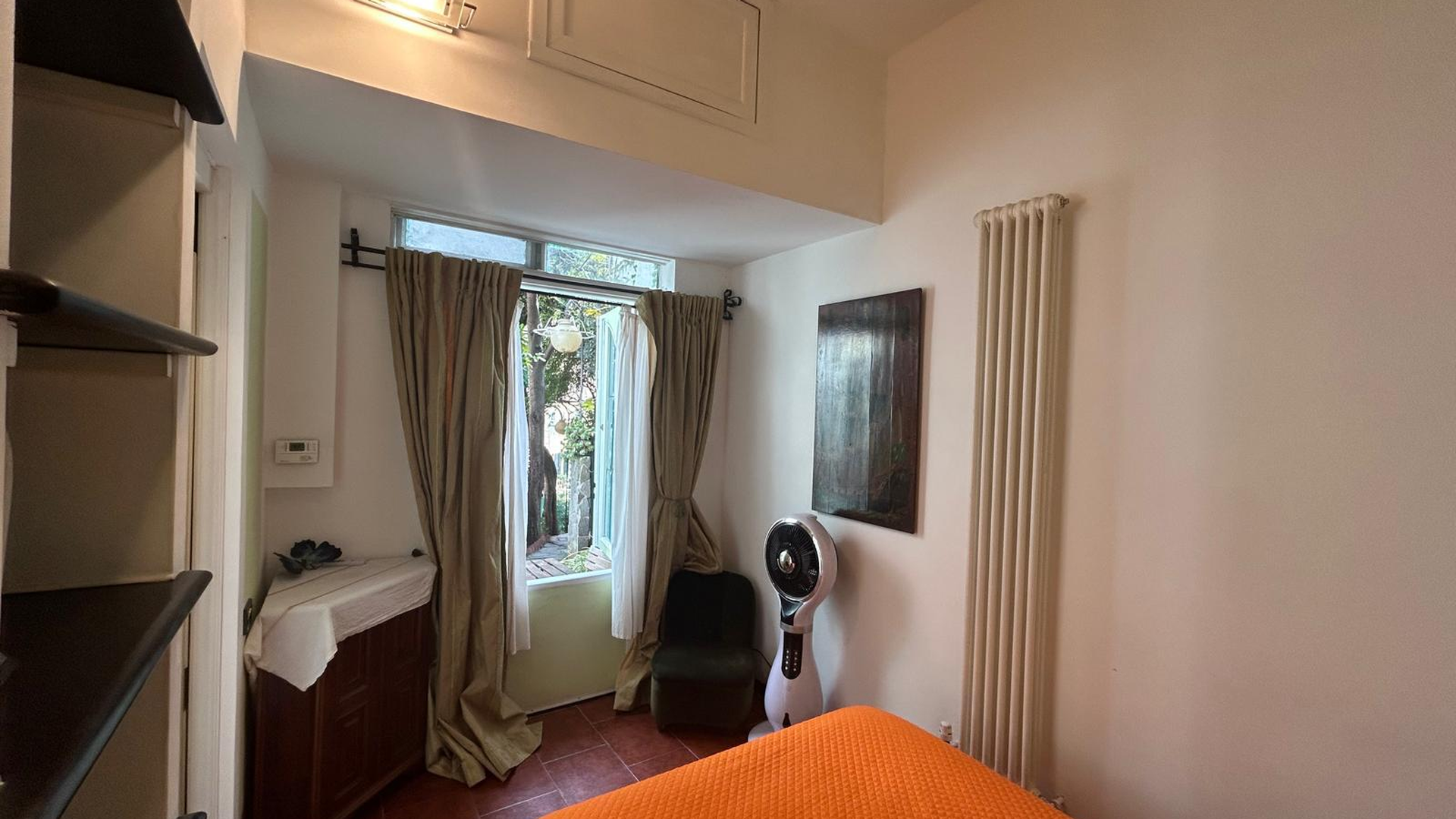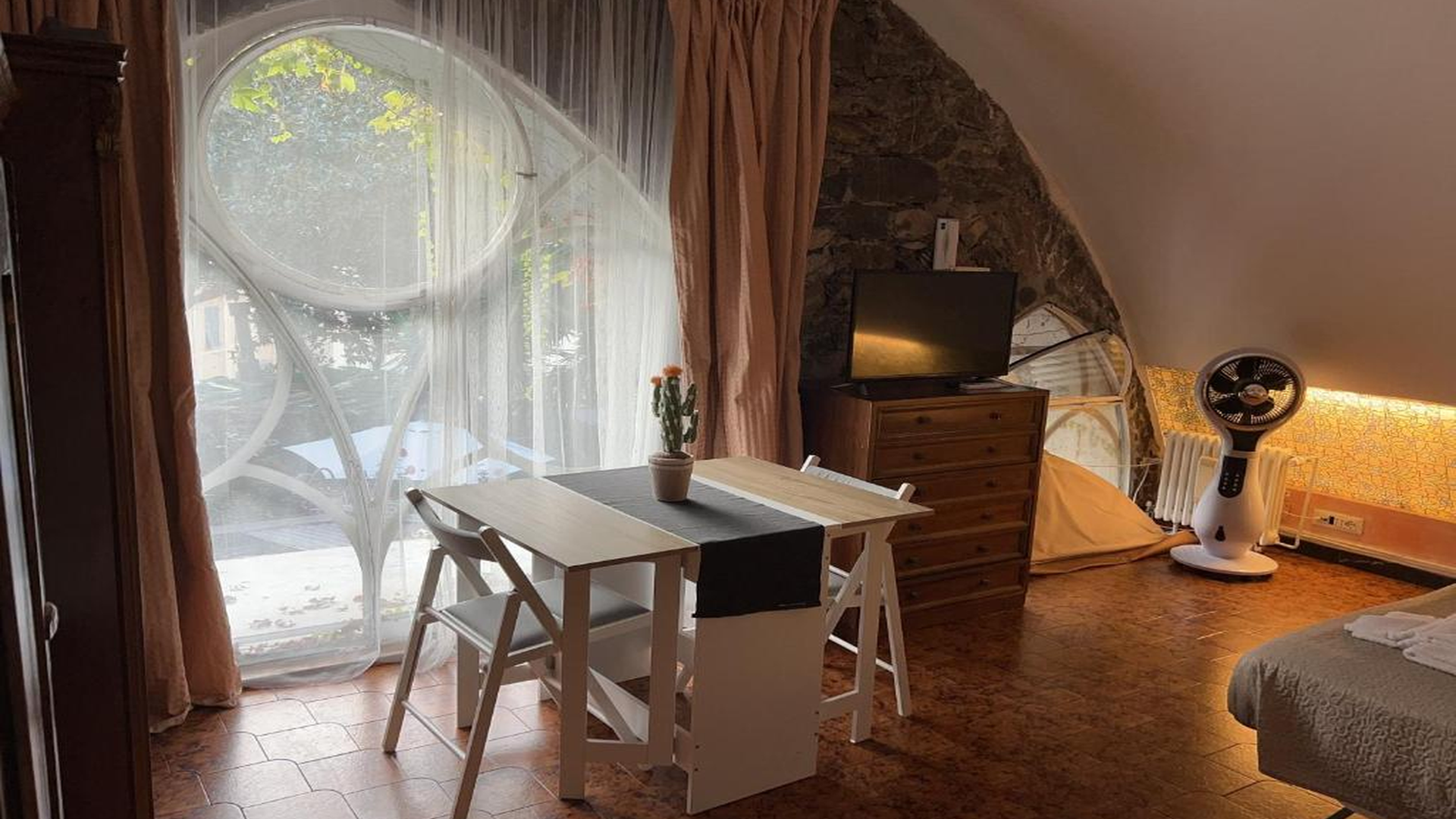 Grazioso monolocale ideale per coppie o piccoli nuclei familiari. Letto matrimoniale trasformabile in due singoli e divano letto singolo. Angolo cottura ricavato in un armadio d'epoca con frigorifero, piastra, lavandino, stoviglie, microonde e caffettiera. Set di cortesia con tè, caffè e tisane. Tavolo con vista giardino e bagno privato con doccia.
