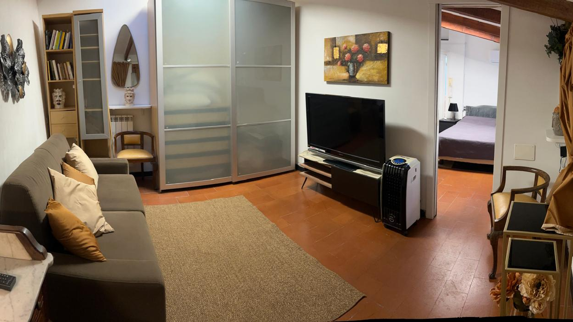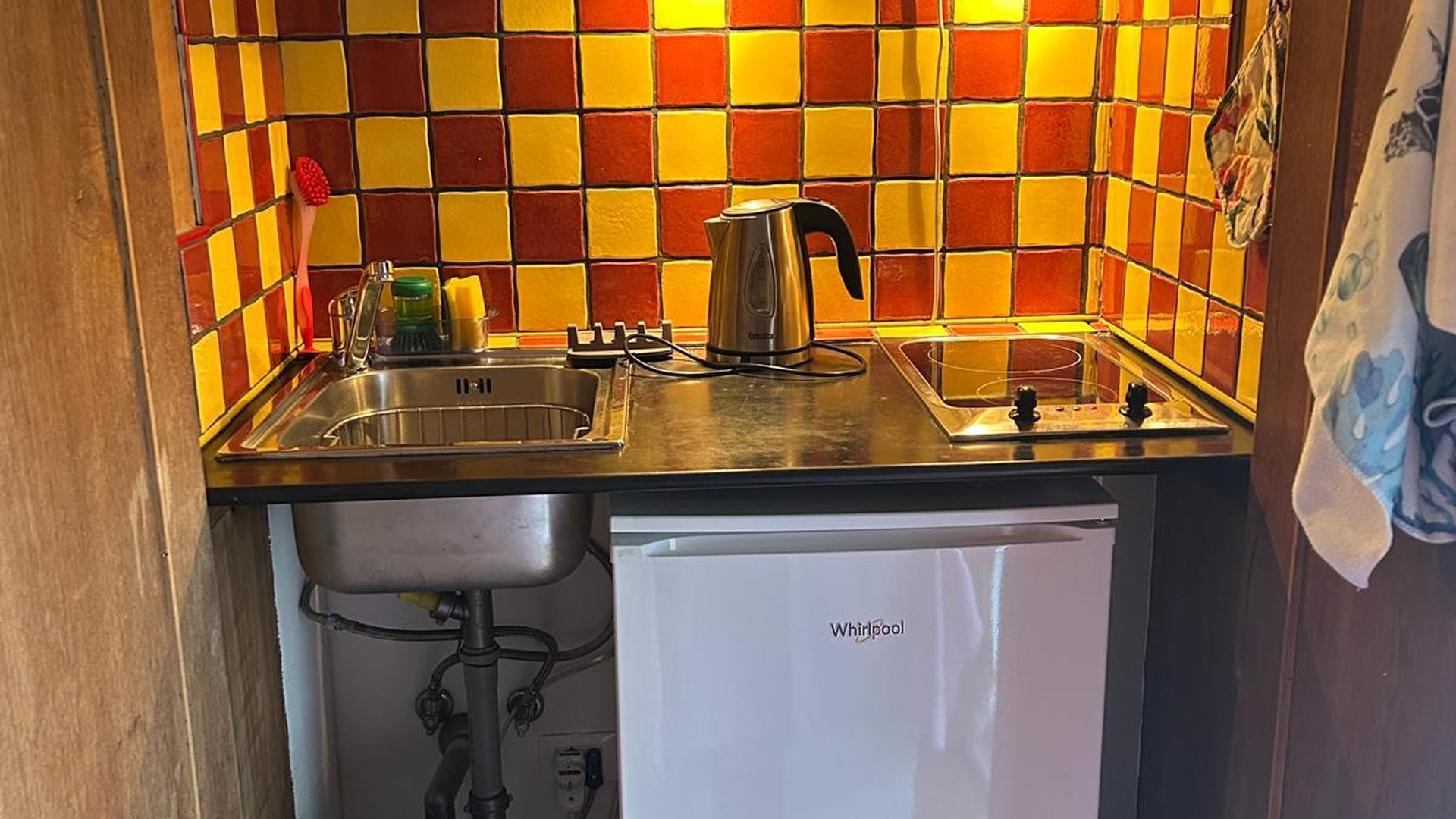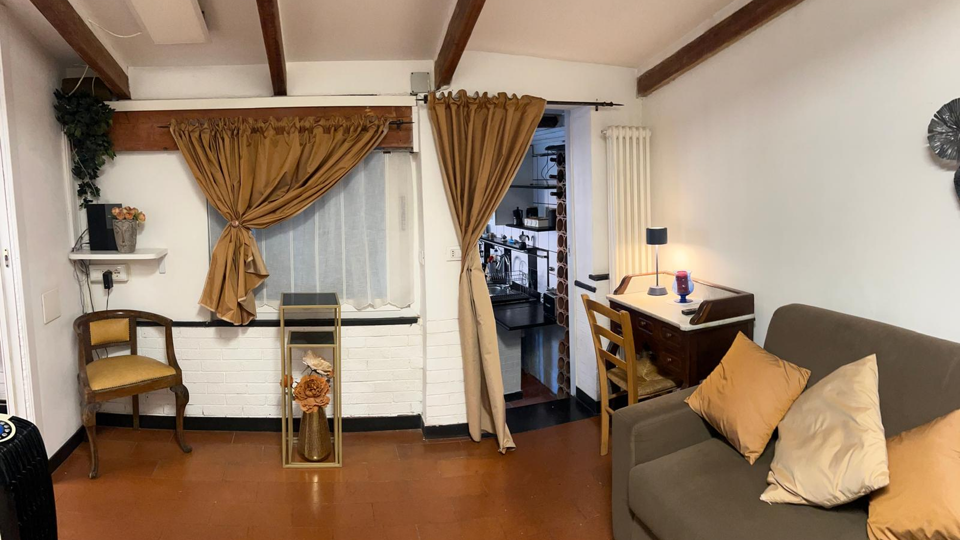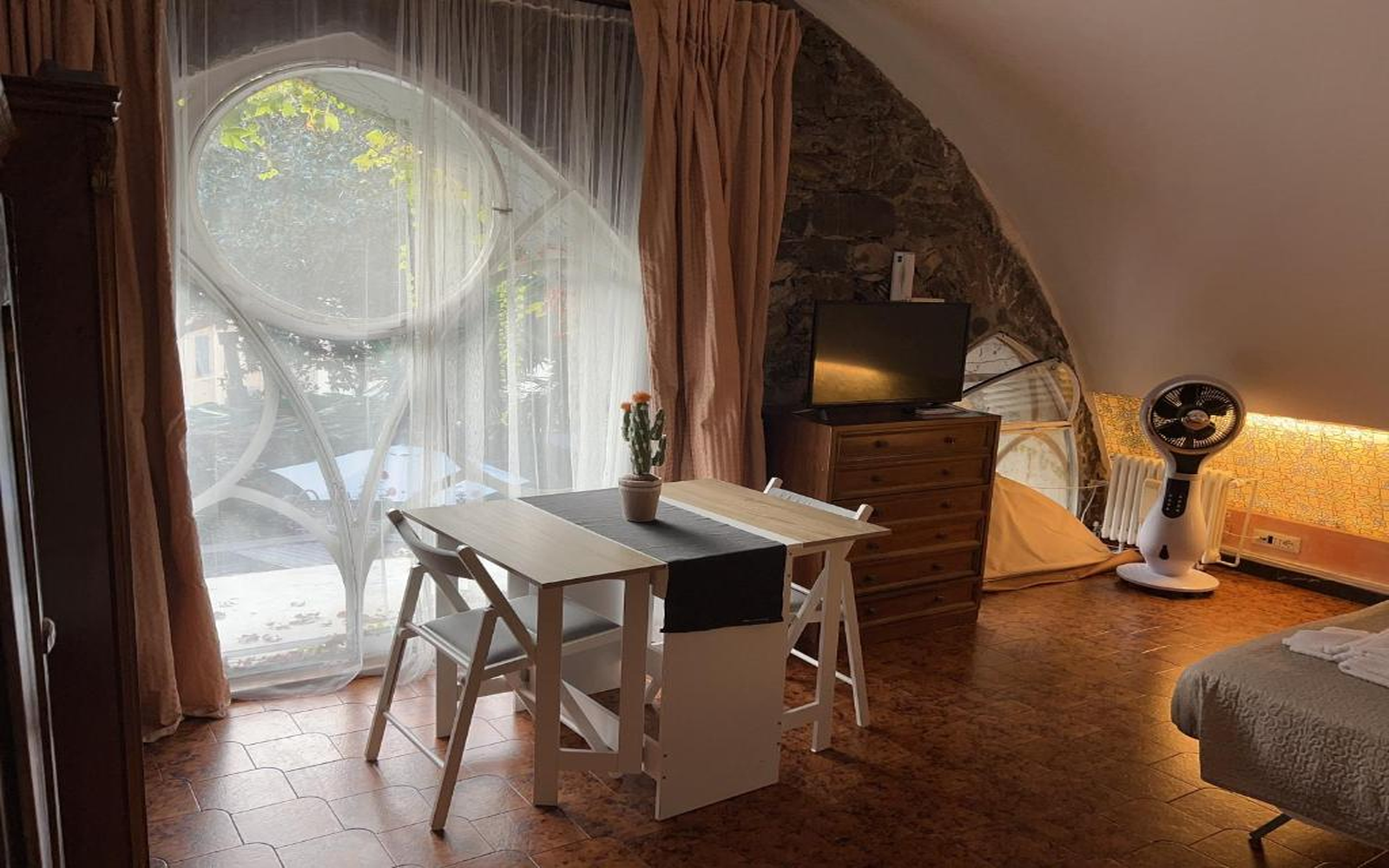 Grazioso monolocale ideale per coppie o piccoli nuclei familiari. Letto matrimoniale trasformabile in due singoli e divano letto singolo. Angolo cottura ricavato in un armadio d'epoca con frigorifero, piastra, lavandino, stoviglie, microonde e caffettiera. Set di cortesia con tè, caffè e tisane. Tavolo con vista giardino e bagno privato con doccia.