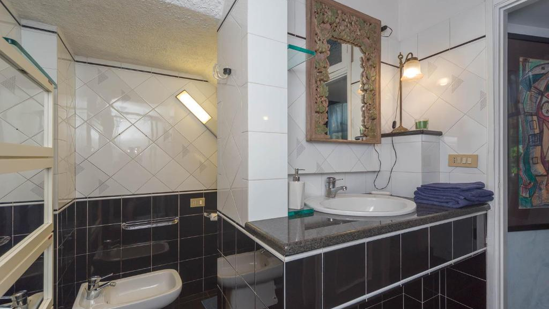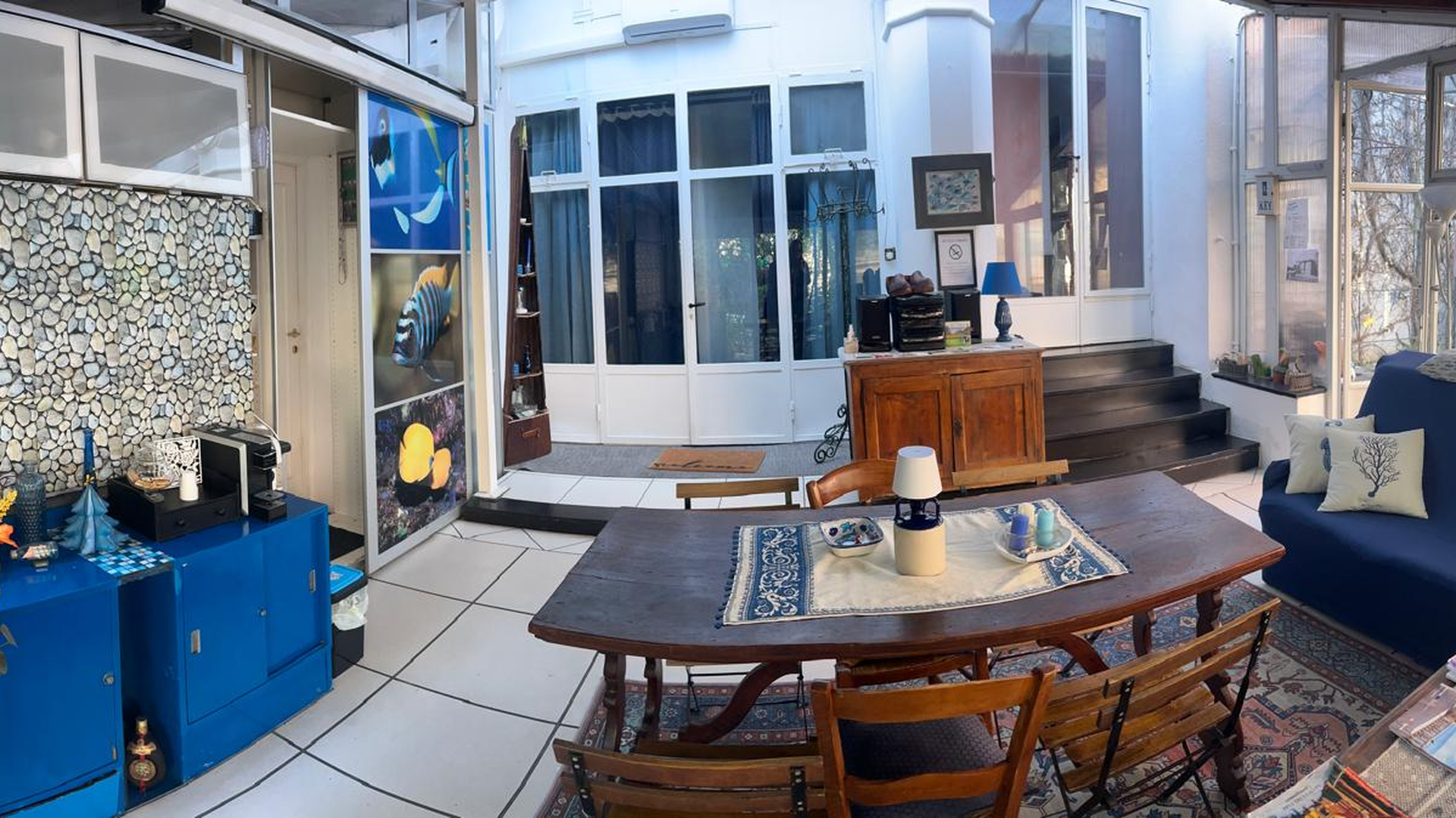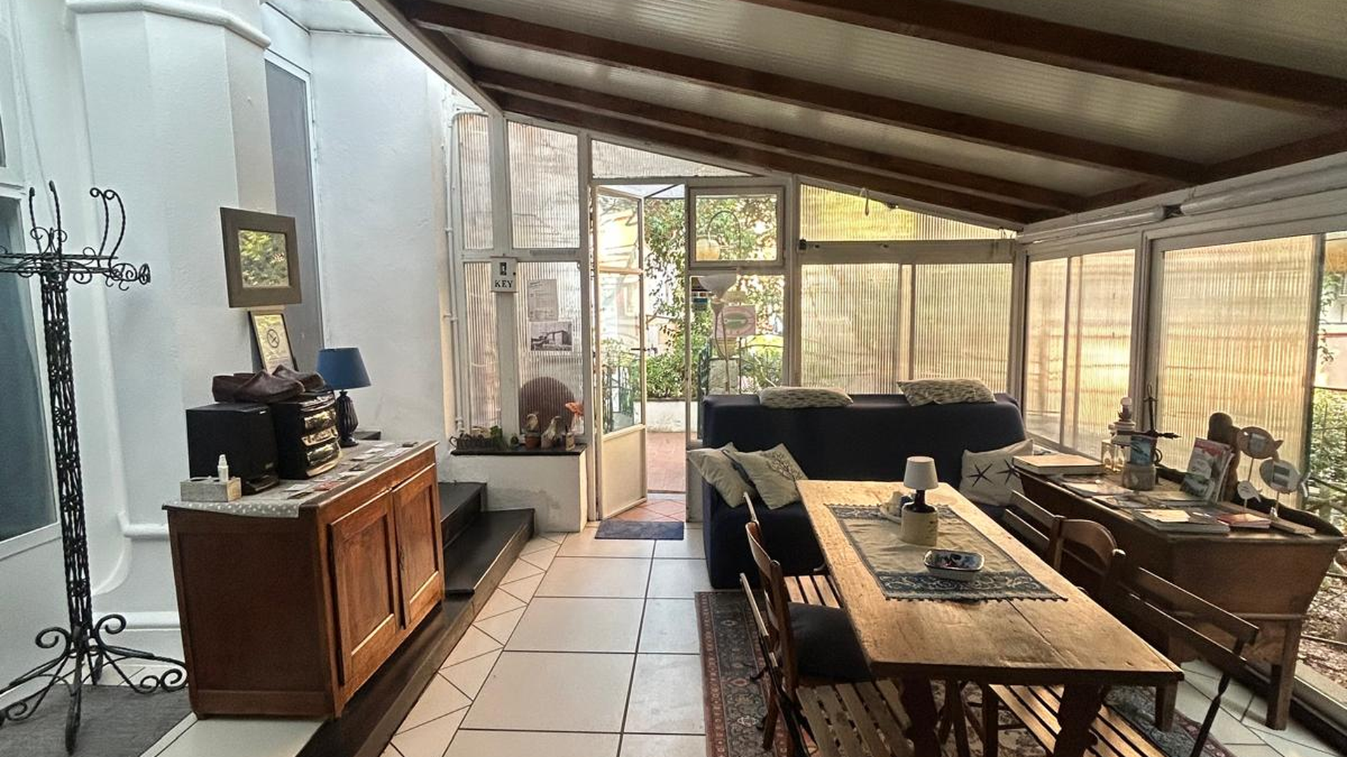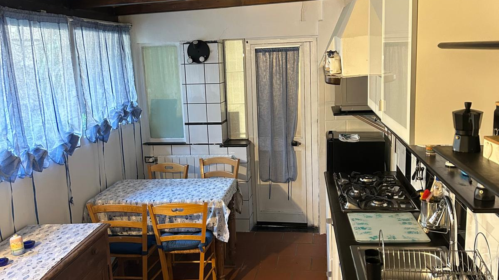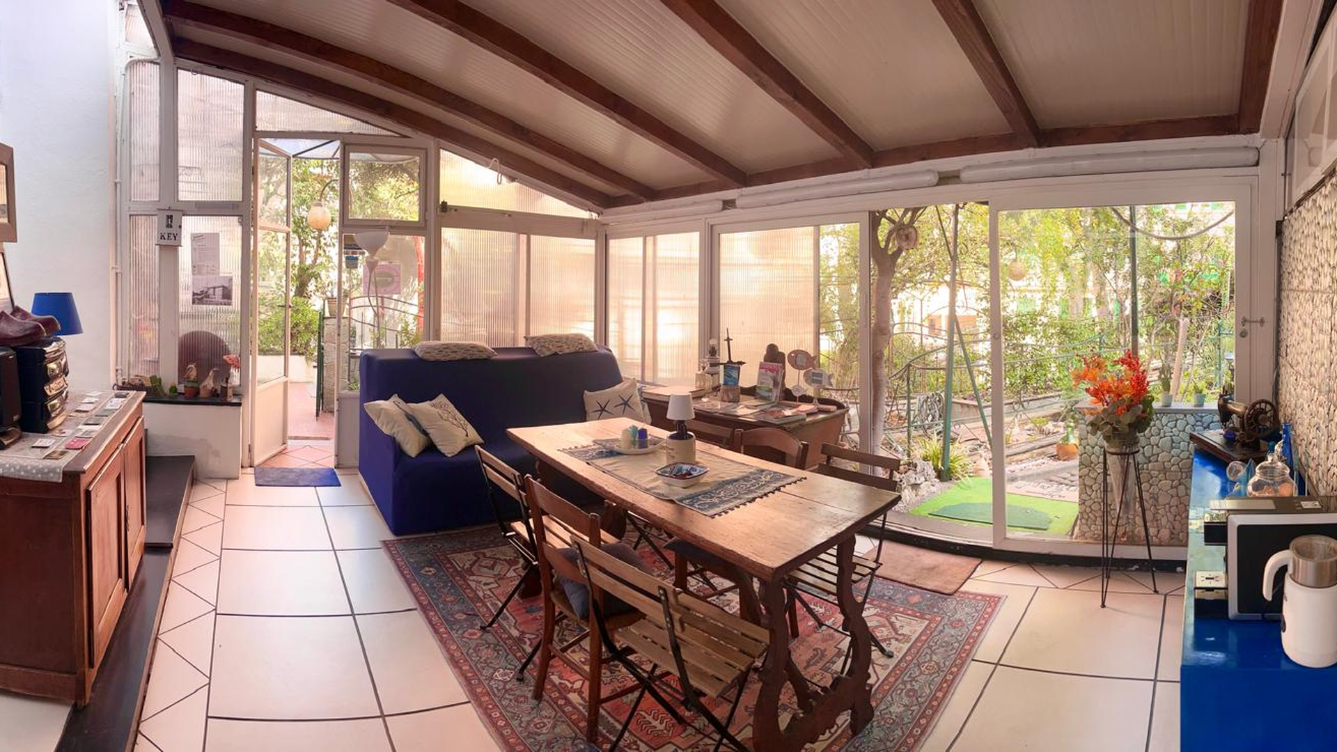 Trilocale di circa 75 mq, ideale per famiglie o soggiorni lunghi. Camera matrimoniale, soggiorno con divano letto e cucina separata attrezzata con frigorifero, piano cottura, forno, lavatrice e stoviglie. Ambienti luminosi grazie a grandi finestre e vetrata. Accesso tramite giardino a veranda vetrata condivisa con tavolo da pranzo e zona relax, mantenendo ingressi indipendenti e privacy.