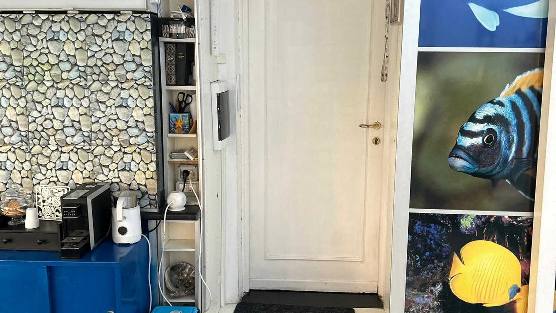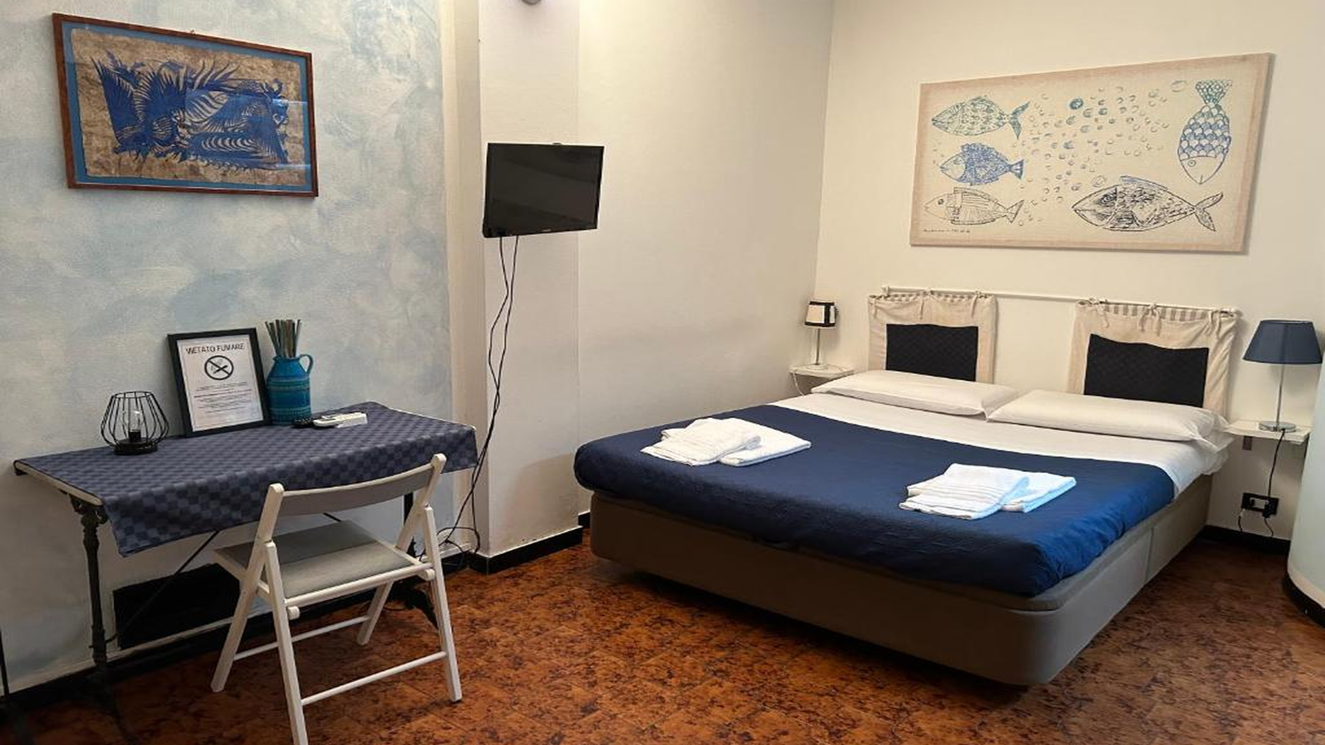 Accogliente e luminosa, la Blue Room è ideale per coppie o famiglie. Dispone di letto matrimoniale e letto a castello a scomparsa: il letto inferiore è adatto per adulti, quello superiore è consigliato per ragazzi più grandi. Angolo ristoro con frigorifero, bollitore, macchina del caffè, microonde e stoviglie complete. Ampio bagno privato con doccia.