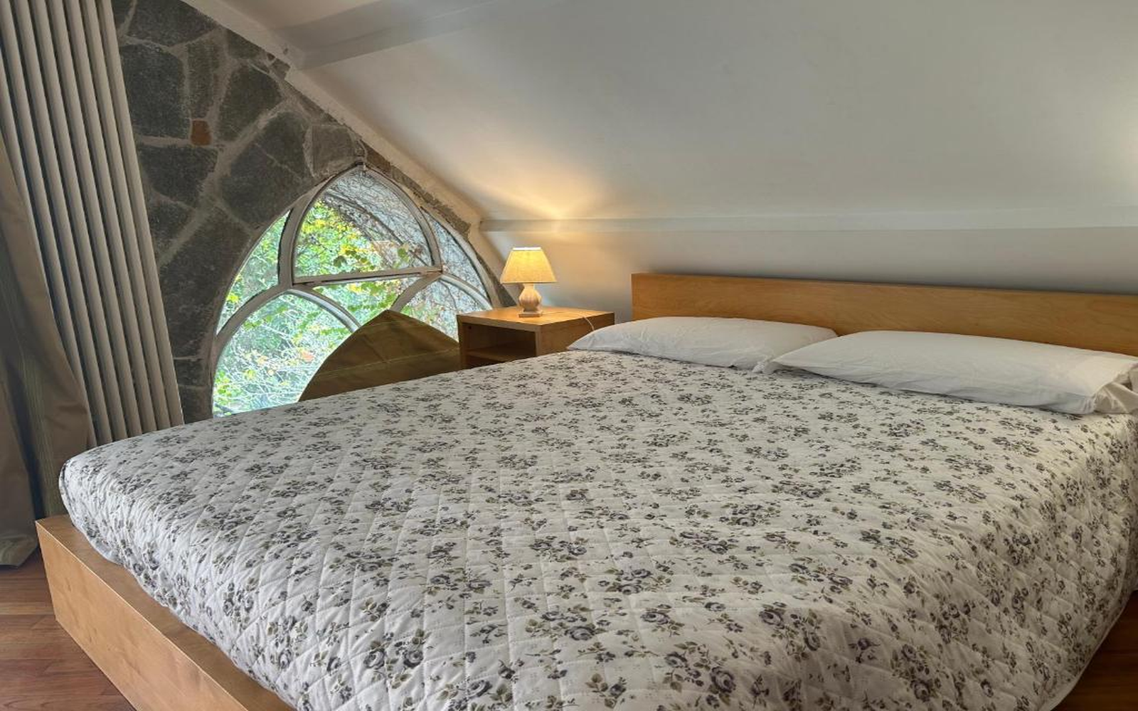 Immerso nel verde e completamente indipendente, il Green Flat è un appartamento su due livelli ideale per famiglie o coppie di amici. Al primo piano: cucina attrezzata con tavolo affacciato sul giardino, camera con letto a una piazza e mezza (130 cm) e bagno con doccia. Al piano superiore: grande camera matrimoniale con possibilità di letto singolo aggiuntivo, muri in pietra a vista e finestre in stile liberty. Ampio bagno con vasca utilizzabile anche come doccia.