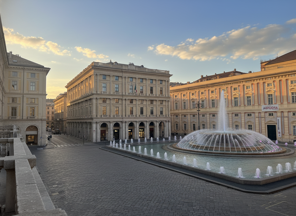 Cuore pulsante della citta, con la sua iconica fontana circolare e i maestosi palazzi che la circondano.